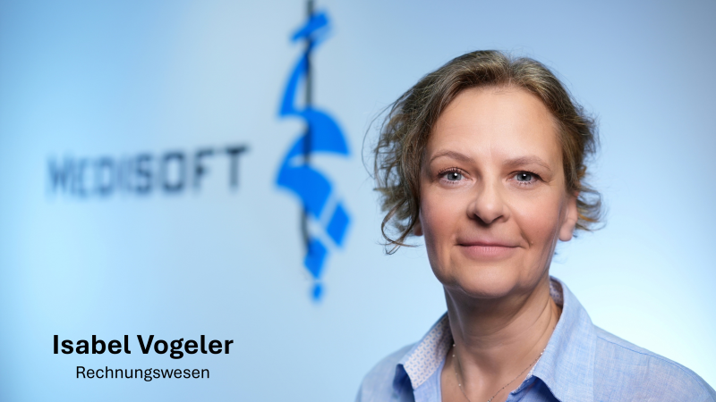 Isabel kennt Medisoft seit der ersten Stunde, hat sie doch als externe Dienstleisterin stets die Finanzbuchhaltung betreut. Mittlerweile ist sie fest ins Team gewechselt und kümmert sich neben der Finanzbuchhaltung auch um das Controlling und die Abrechnung.